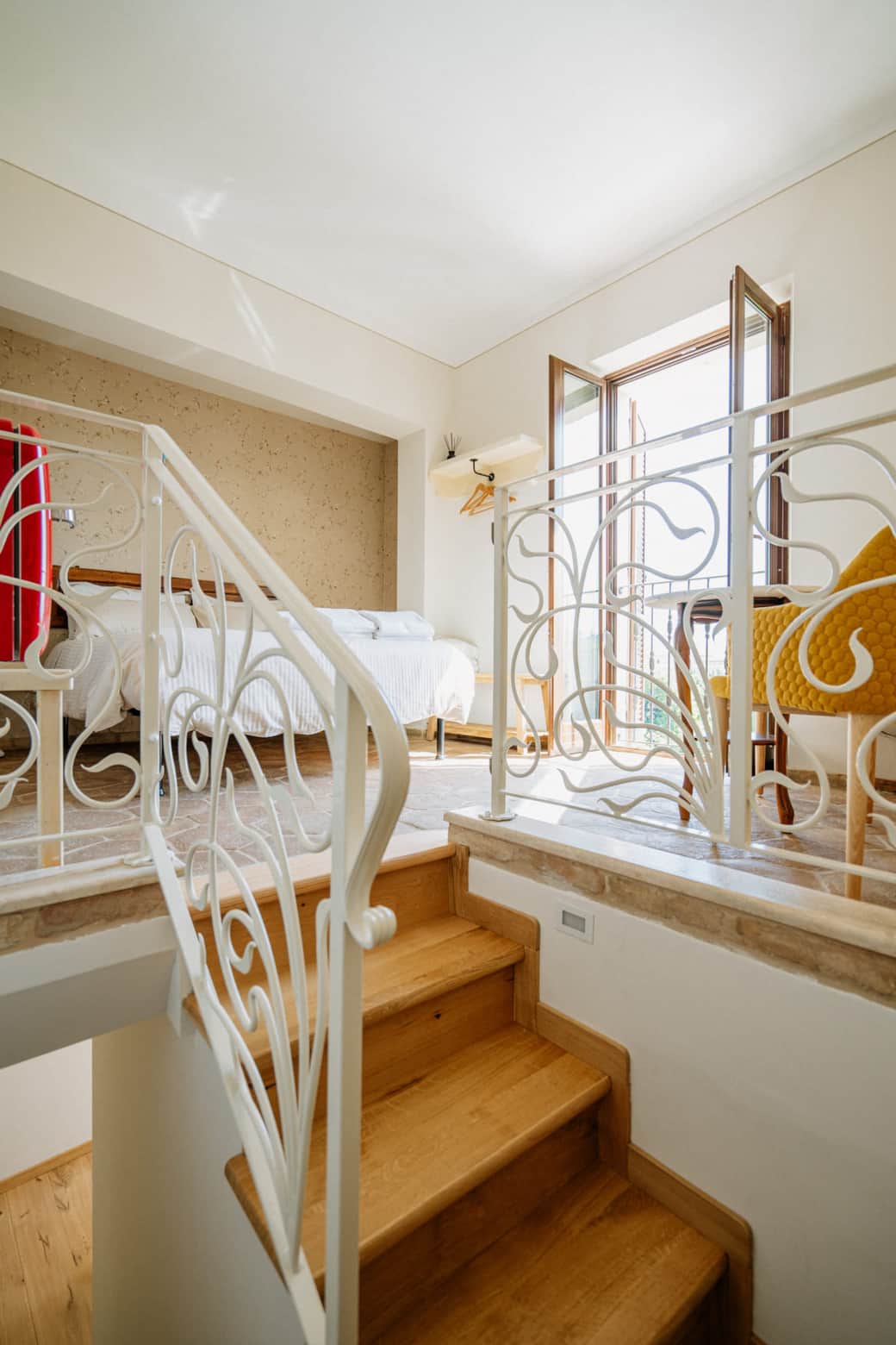 The Tiglio Room welcomes you with a double bed and a private bathroom complete with Turkish bath, walk-in shower, bathtub and bidet. High-quality bathrobes and toiletries add a touch of luxury to your experience. The panoramic view of the garden, the private entrance and the soundproof walls guarantee maximum comfort. Enjoy the adjustable temperature with the climate control and your entertainment on the flat-screen TV with streaming services. The minibar with a selection of drinks and free wifi are at your disposal for an even more comfortable stay. However, note that access to the room requires climbing a staircase, which should be kept in mind for those who may prefer step-free access.